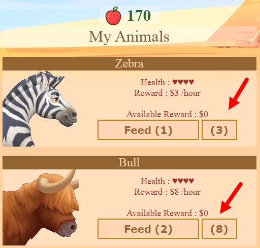 Каждое животное имеет ограниченную жизнь, почасовой доход и цену. Вы должны регулярно проверять свою ферму и требовать награду.