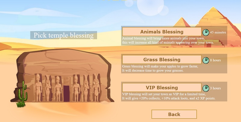 Благословение храма может принести больше животных в ваш город, ускорить ферму или дать вам VIP-город.