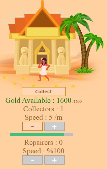 Как было сказано ранее, на первоначальном этапе у вас имеется один рабочий и заводик по добыче золота. Другие строения вы можете приобрести последовательно за определенное количество золота.