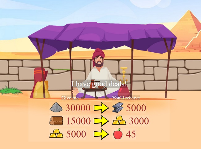 Неотъемлемая часть игры. Владелец лавки в рэндомном порядке предлагает вам сделку. В нашем случае запрашивается 20000 дерева за 105 баксов с временем обработки 10 минут.